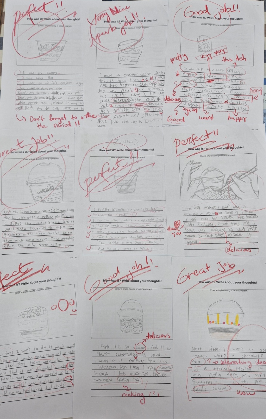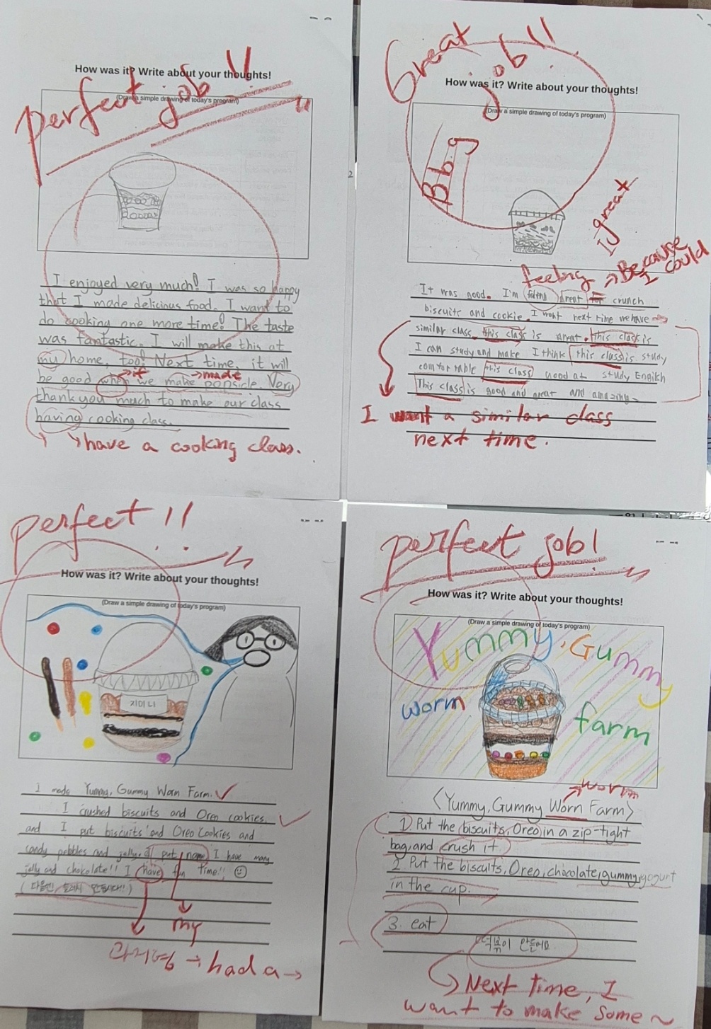 ④ 느낀 점 표현 (Personal Reflection) 내용에 대한 자신의 생각과 감정을 영어로 표현해봄. “왜 그렇게 느꼈는지”를 설명하는 과정을 통해 영어적 감정 표현력과 논리적 사고력을 함께 발전. 학생이 영어를 자기 생각을 표현하는 언어로 인식.