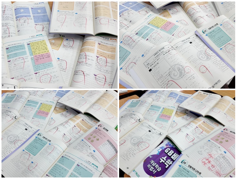 우리 학생분들이 열정을 다해 시험을 치르고 난 뒤, 하원 이후 고사장의 모습입니다. 선생님들께서 채점하시는 모습을 자세히 본 건 이번이 처음일 것 같아요!