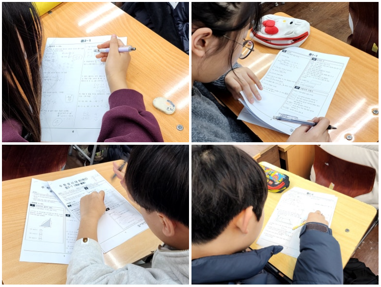 시험이 딱 시작하자마자 집중하기 시작하는 학생들의 모습이 보이네요~