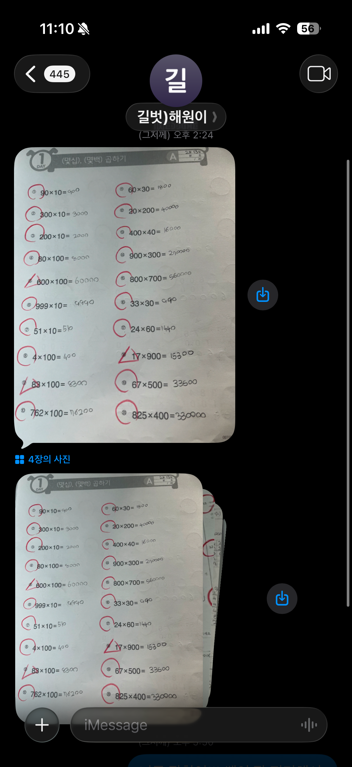 오늘 공부한 내용과 숙제를 매일 카톡/메시지로 선생님께 인증