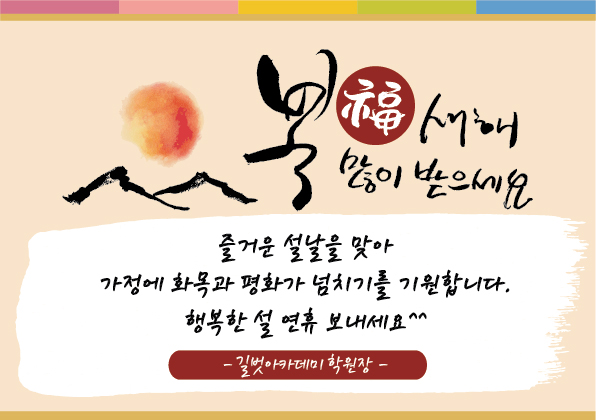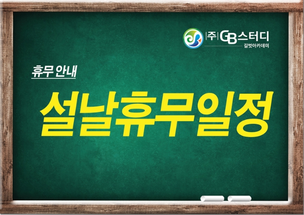 길벗아카데미에서는 설날 연휴기간동안 학원 휴무 일정을 아래와 같이 안내 하오니 참고 하시어 즐거운 설날 연휴를 보내시길 바랍니다.