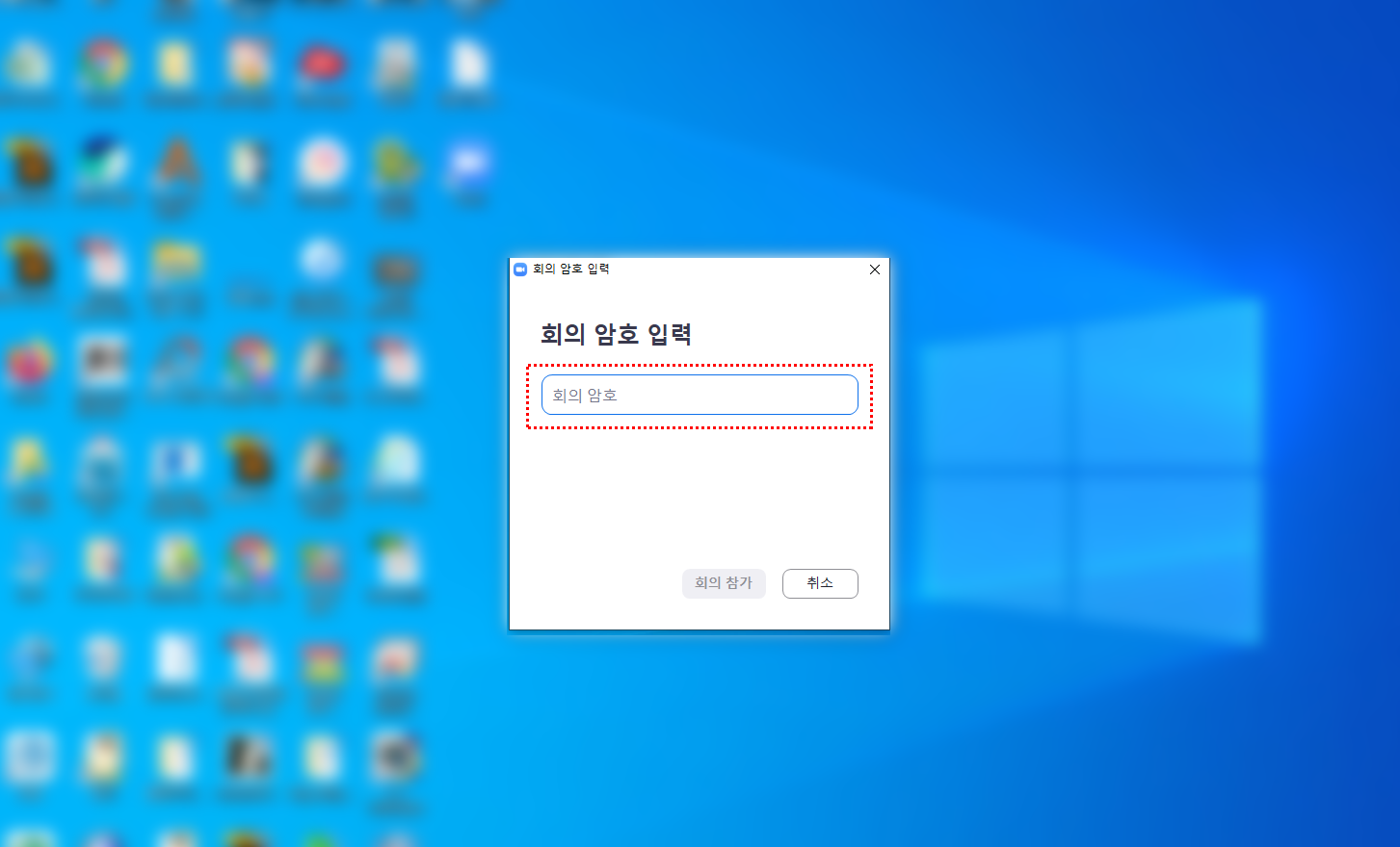 4. 사전에 받은 회의암호를 입력합니다.