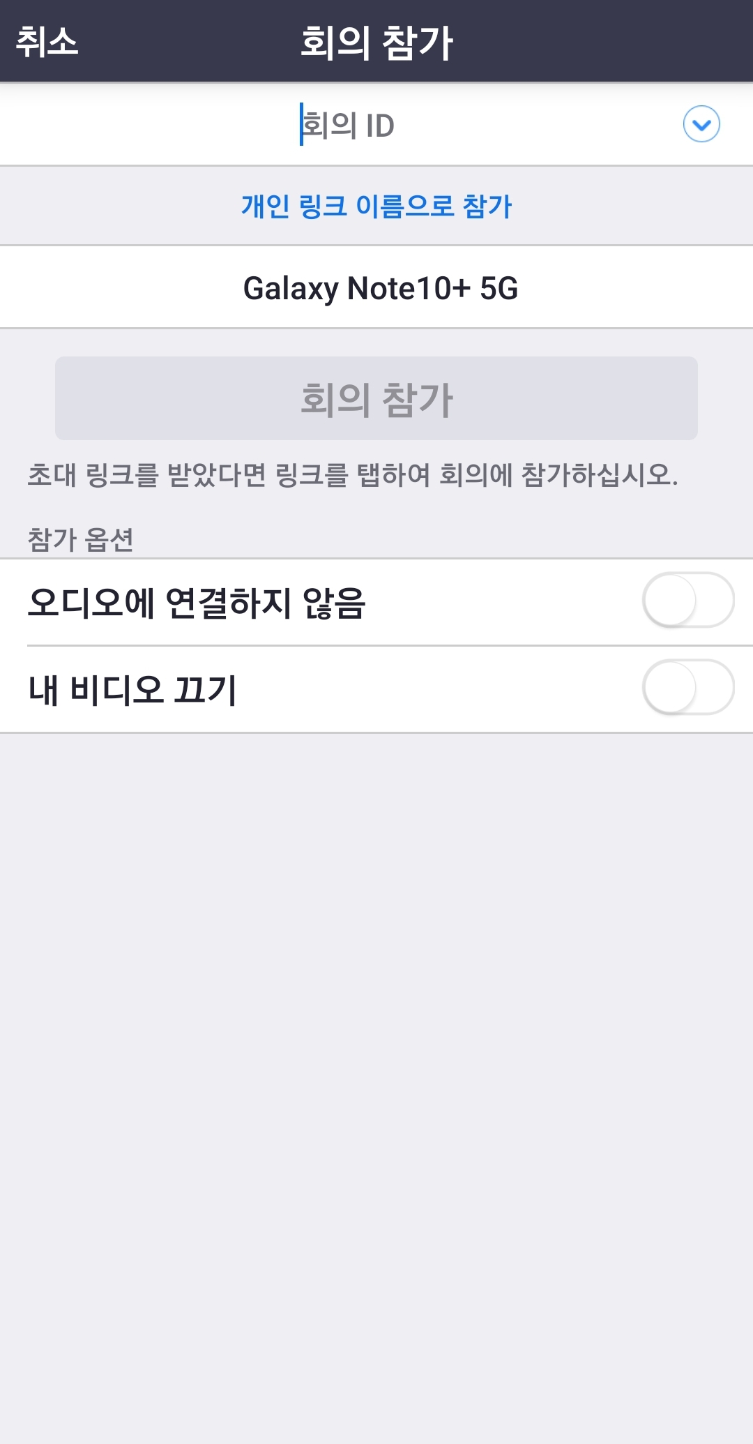 2. 어플을 실행시키고 회의참가를 누릅니다.