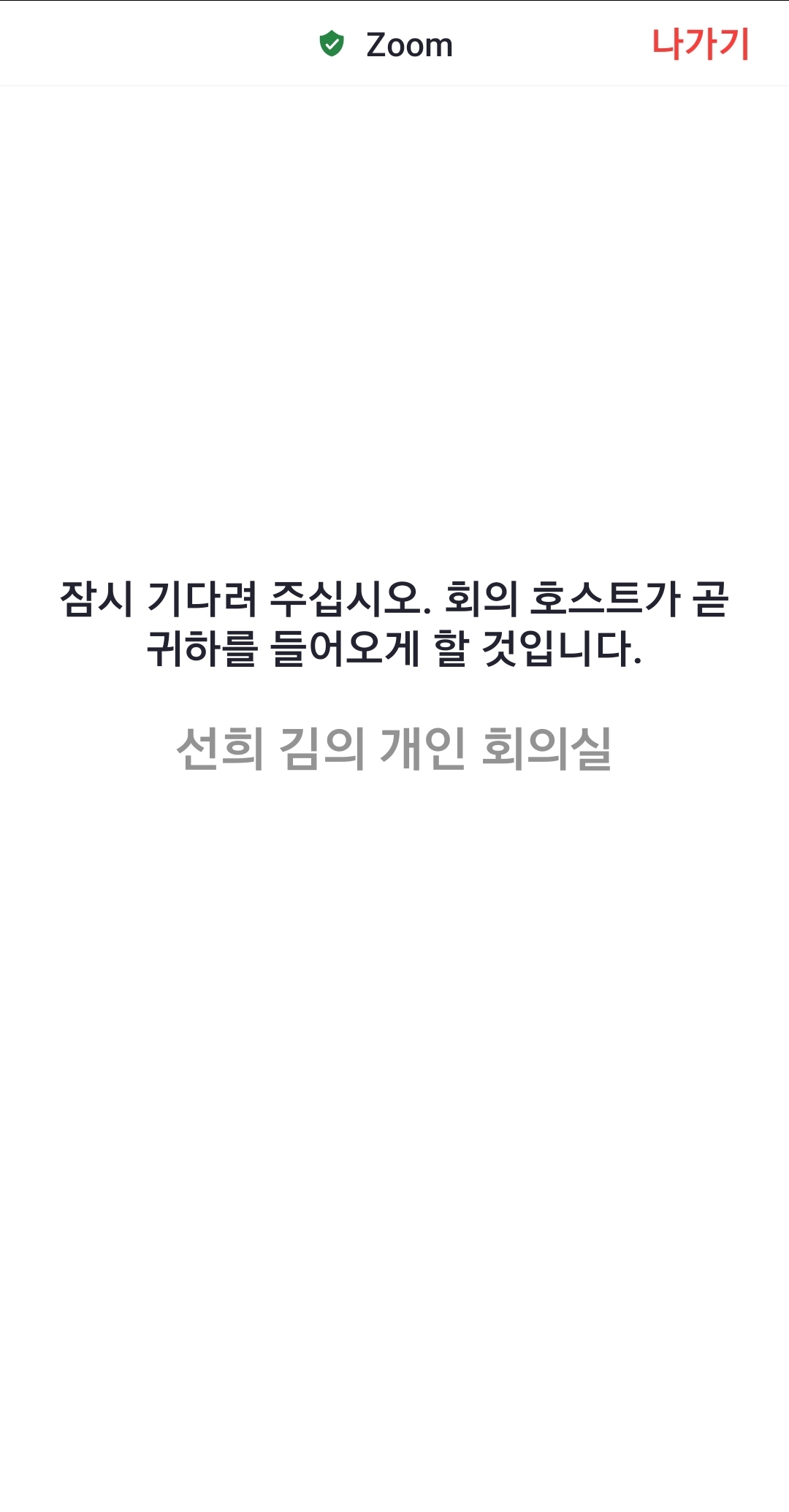 5. 암호 입력창이 나오면 사전에 받은 회의암호를 입력하고 교실 담임선생님이나 담당자가 참가 수락할때까지 잠시 기다립니다.