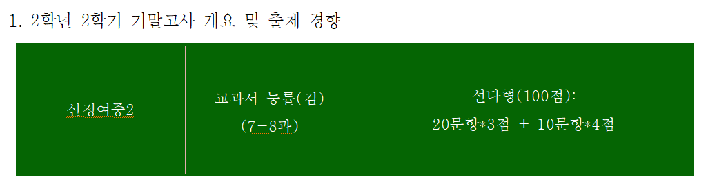 1. 1학년 2학기 기말고사 개요 및 출제 경향