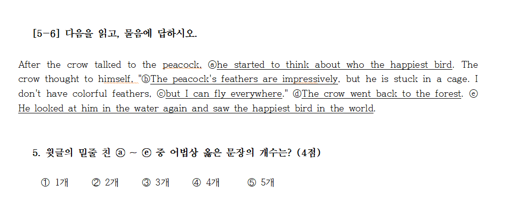 5번 윗글의 밑줄 친 a~e 중 어법상 옳은 문장의 개수는? (4점)