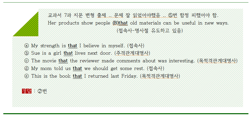 2. 전반적인 문법 학습이 평소에 많이 이루어져야 한다.