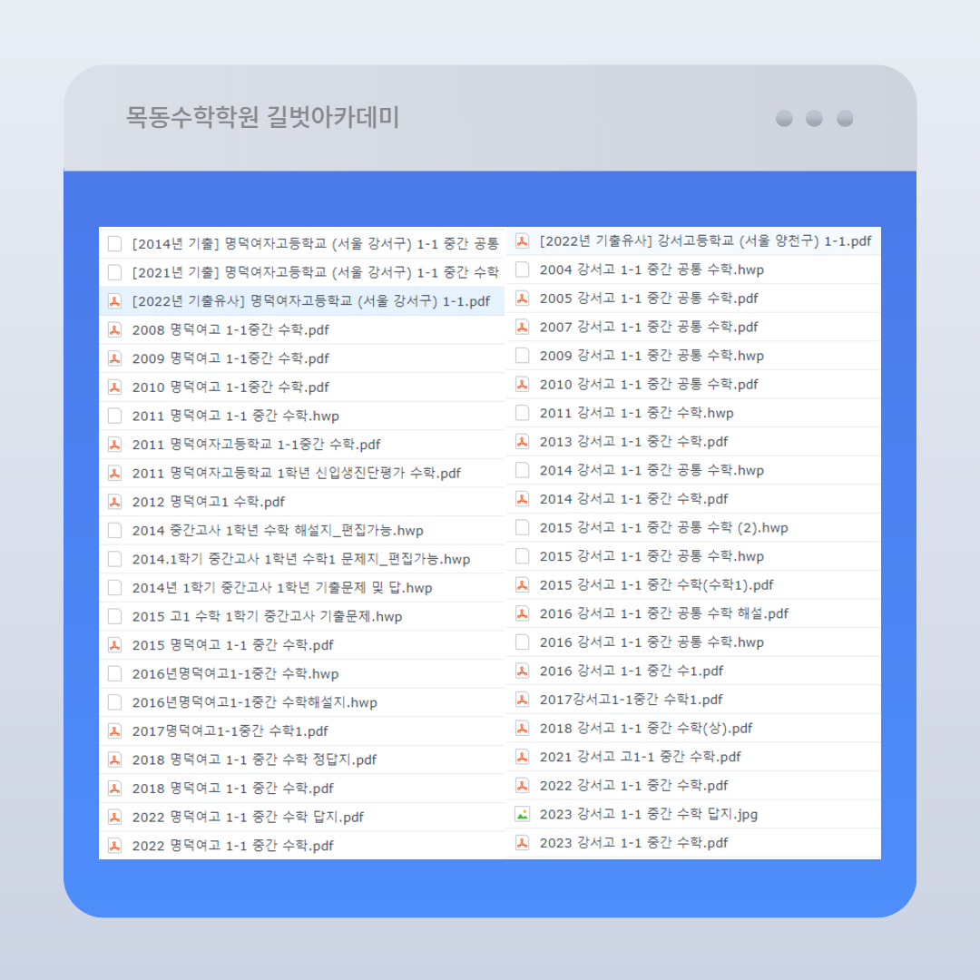 목동수학학원 I 기말고사 내신대비, 길벗 무료특강과 함께하자!