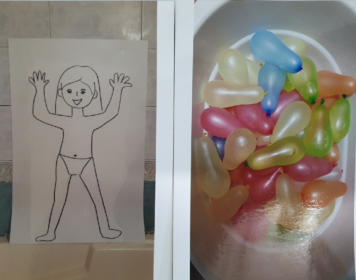 엄마표 영어놀이 2. 신체부위 물풍선으로 맞추기