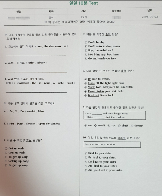 목동초등영어학원 길벗아카데미 10분 테스트