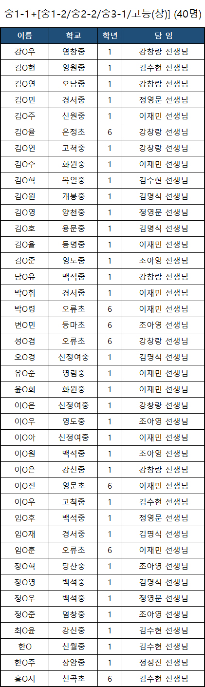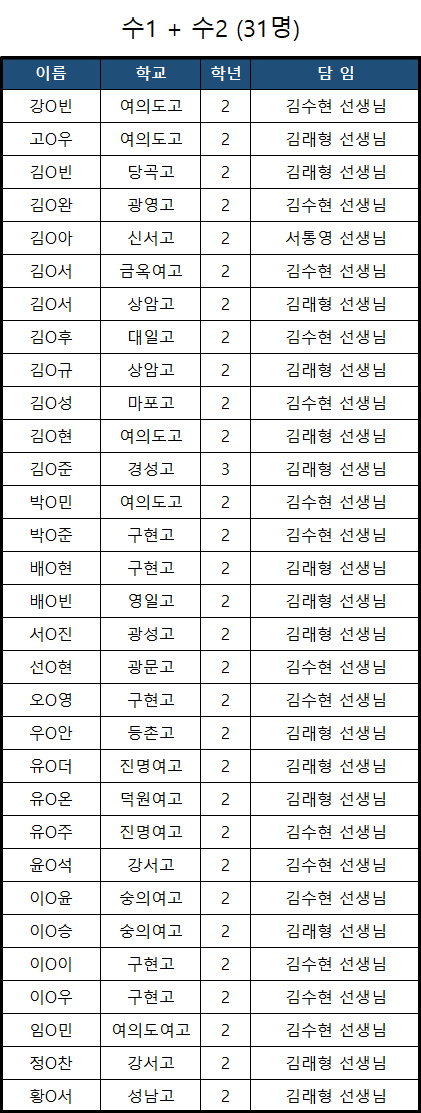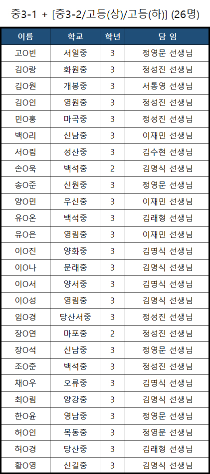 길벗아카데미 제 33회차 수학경시대회 결선 진출자 명단을 공개합니다.