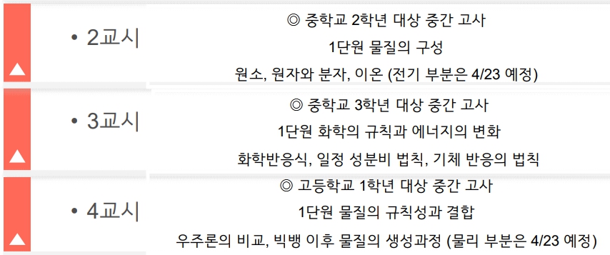 길벗아카데미에서 2024년 1학기 중간고사 대비 과학과목 무료특강을 시행합니다.