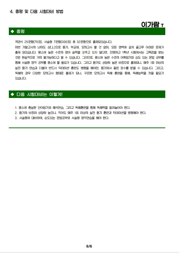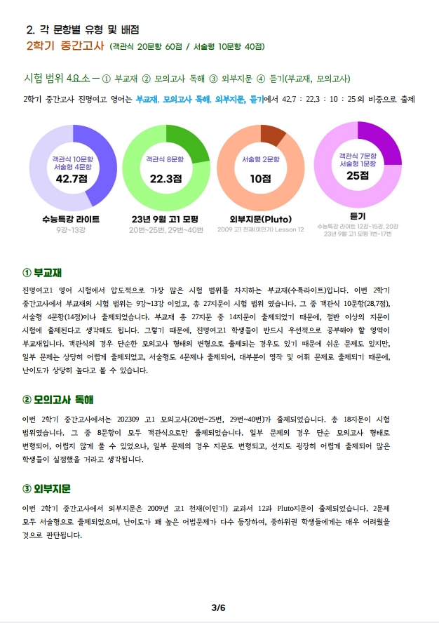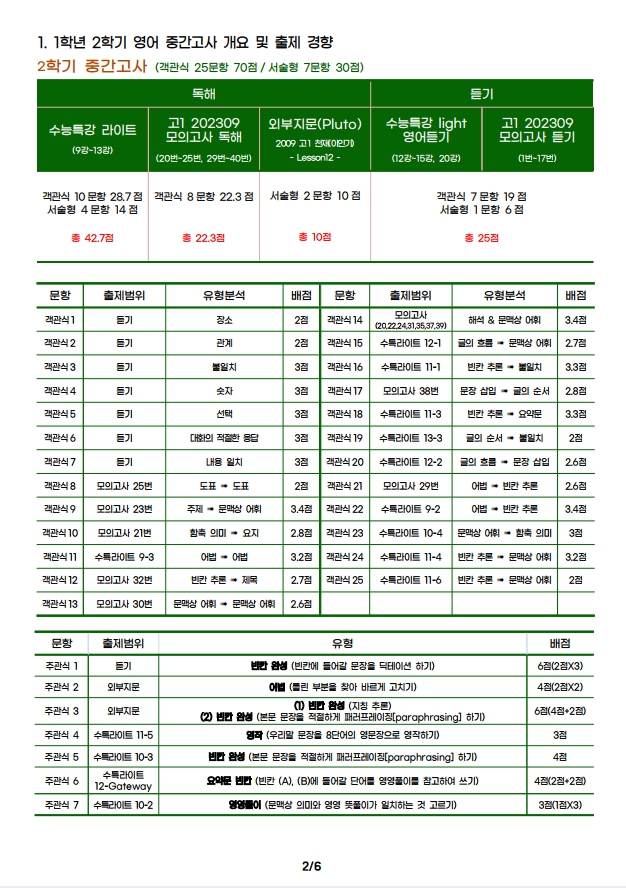 2023년도 2학기 중간고사 분석자료 - 고1영어 진명여고