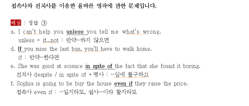 영어: 시험 범위 내의 단어 및 문법 점검