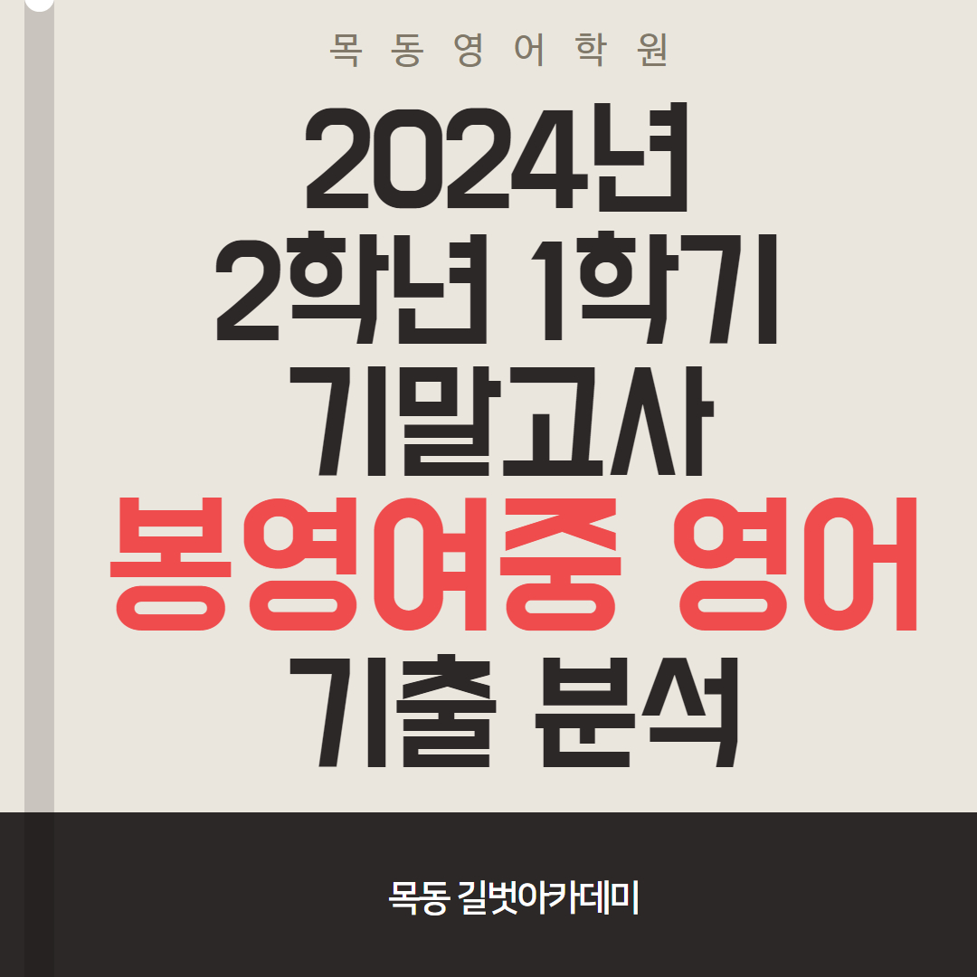 목동영어학원 2024년 2학년 1학기 기말고사 봉영여중 기출 분석(임상환T)