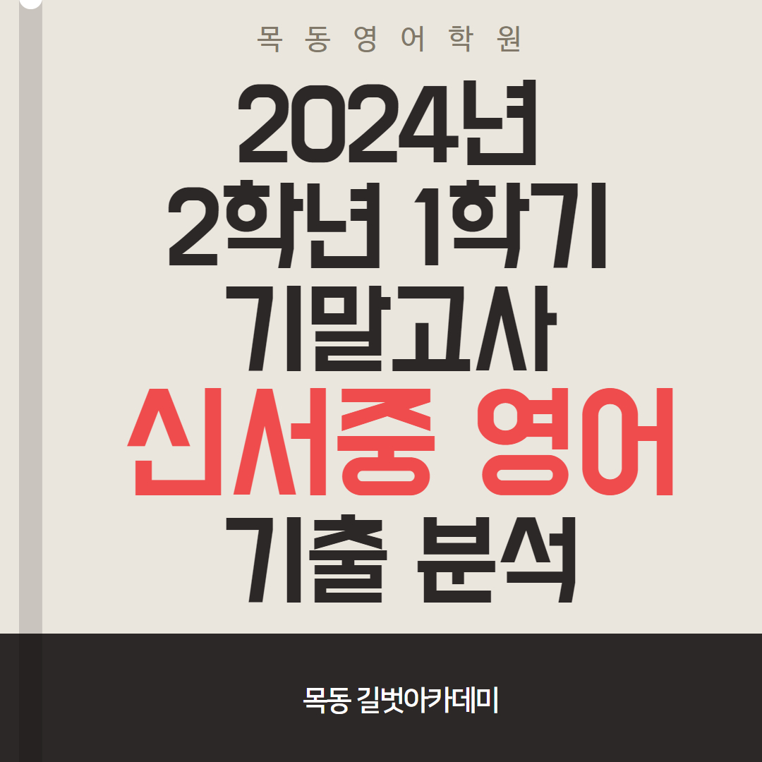 안녕하세요. 오늘은 목동영어학원 길벗아카데미에서 신서중 2학년 1학기 영어 기말고사 기출문제를 분석해 드리려고 합니다!