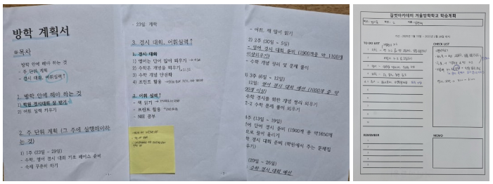 길벗아카데미 방학학교에서는 학습계획을 세우고 점검해주고, 의대생 선생님들이 관리도 해주셨다고 하더라고요. 학습 동기부여도 되고 구체적으로 어떻게 학습을 해야 되는지 방향도 점검받아 도움이 많이 되었다고 합니다.
