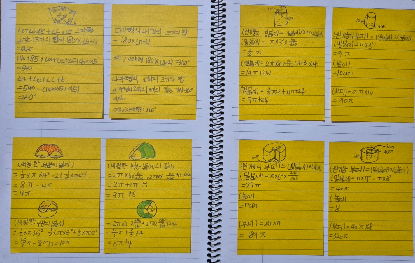 개념공식을 공부하며 포스트잇에 붙여놓기도 하고 다양한 방법으로 노력하더라고요.