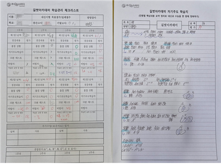자기주도 학습서로 예습과 복습을 철저히 점검하시고, 수학은 개념과 공식을 매번 백지 테스트해서 완벽히 개념을 익히도록 하더라고요.