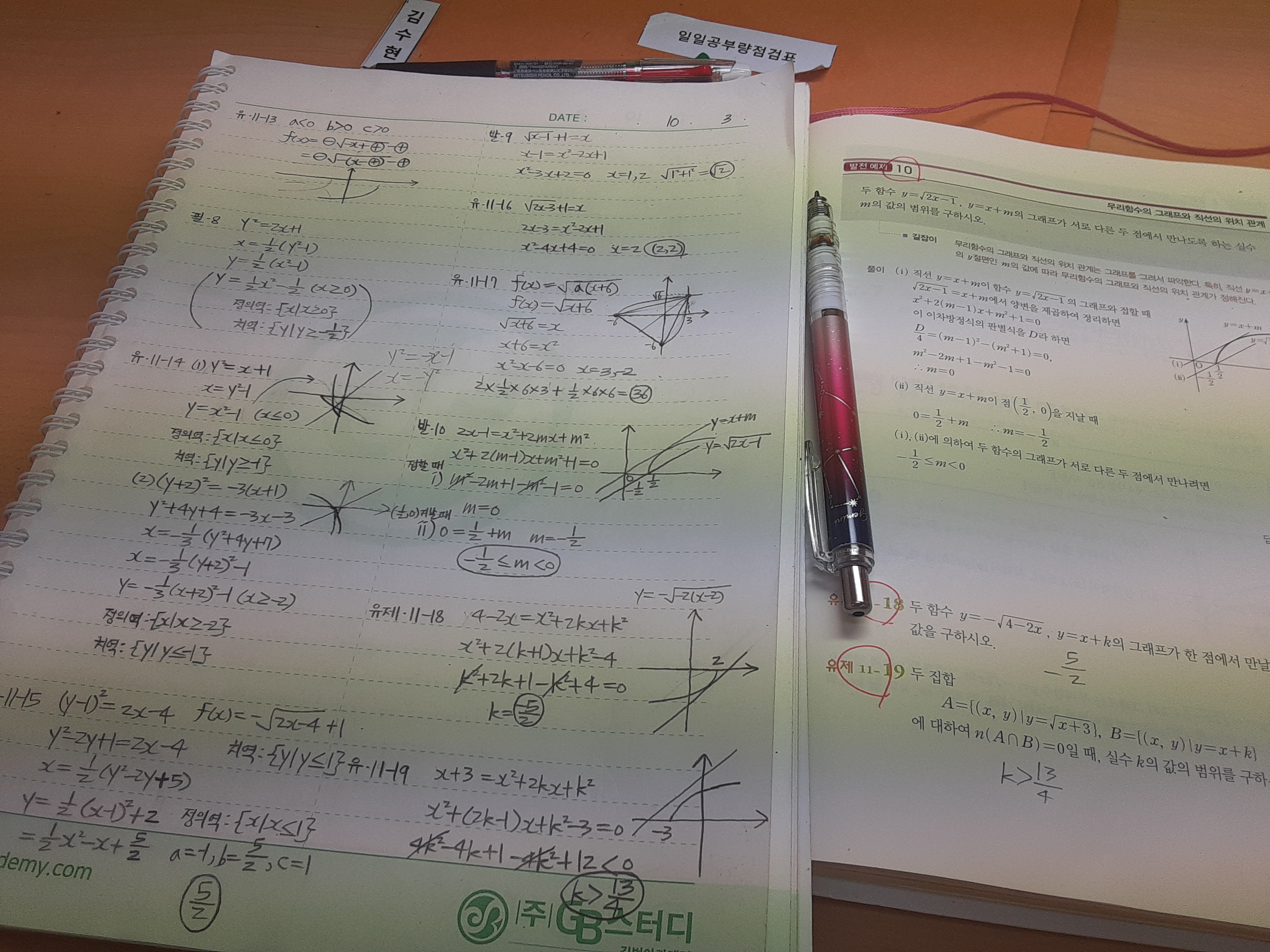 수학은 김수현 선생님 수업을 듣고 있기에 테스트를 보고 오답정리와 숙제를 하고 선생님과 친구들을 통해 동기부여를 받고 열품타를 켜면서 꾸준히 공부했습니다.