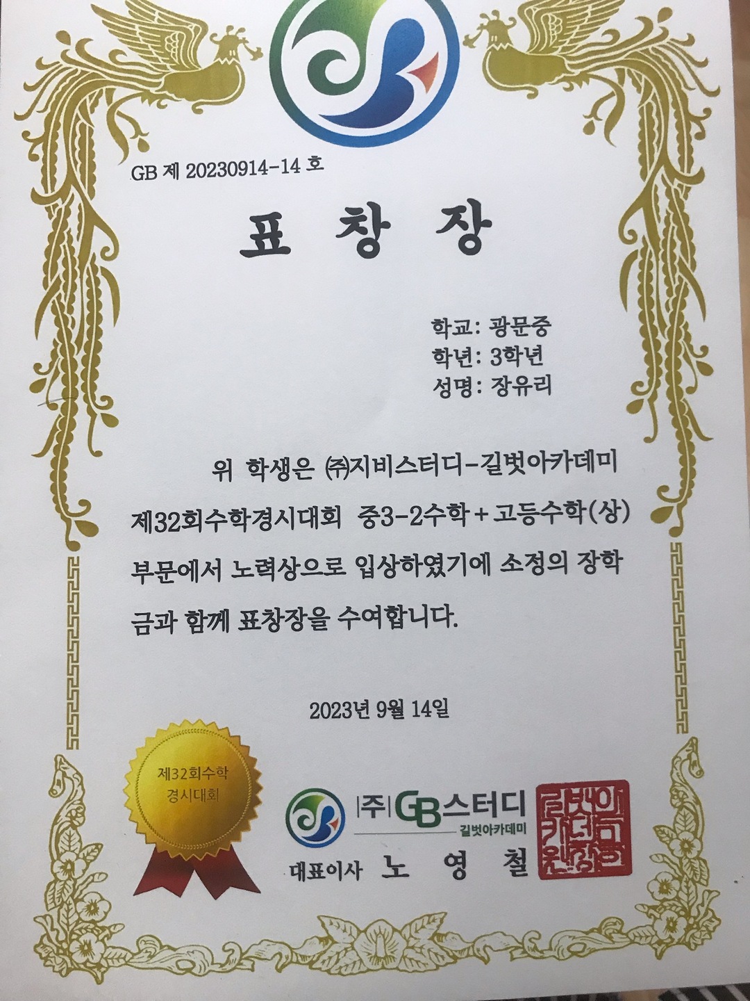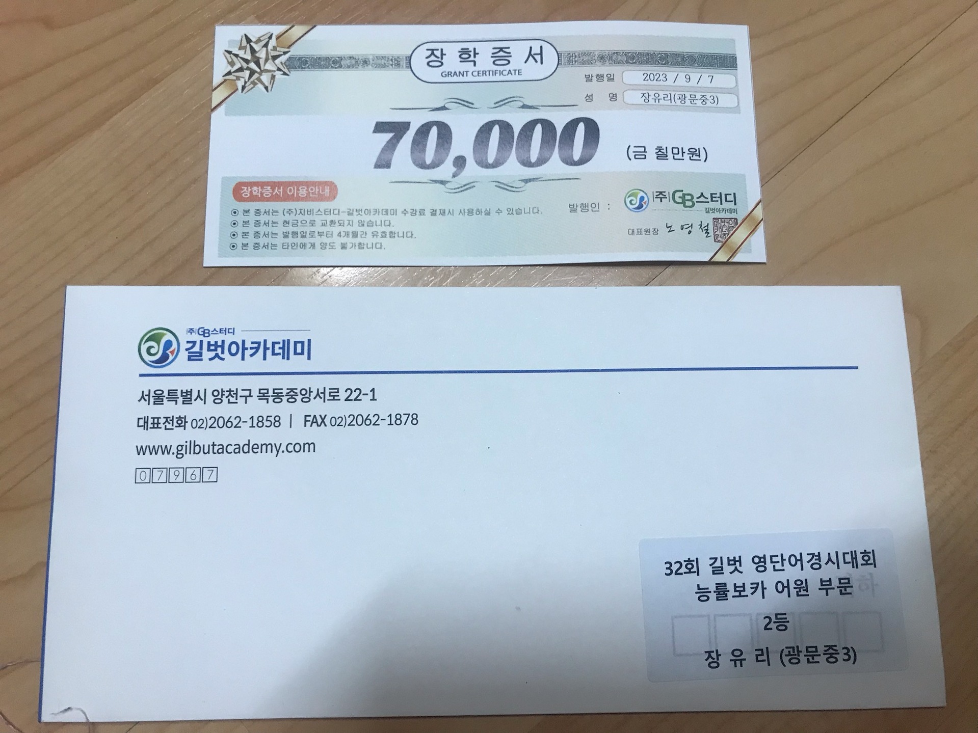 방학 때 열심히 공부한 학생들에게 실력을 발휘할 기회를 주는 경시대회! 지난 겨울방학 때는 경시대회에서 수상하지 못했지만 이번 영단어경시대회에서 2등을 했고, 수학경시대회에서 노력상(4등)을 받았습니다:) 비록 1등은 아니지만 그 전의 나와 비교하여 성장했다는 사실에 진심으로 기뻤습니다! 방학 때 꾸준히 공부한 보람이 있었습니다.