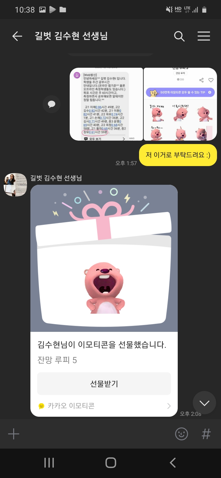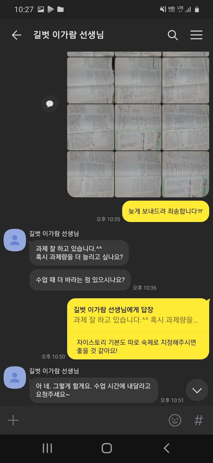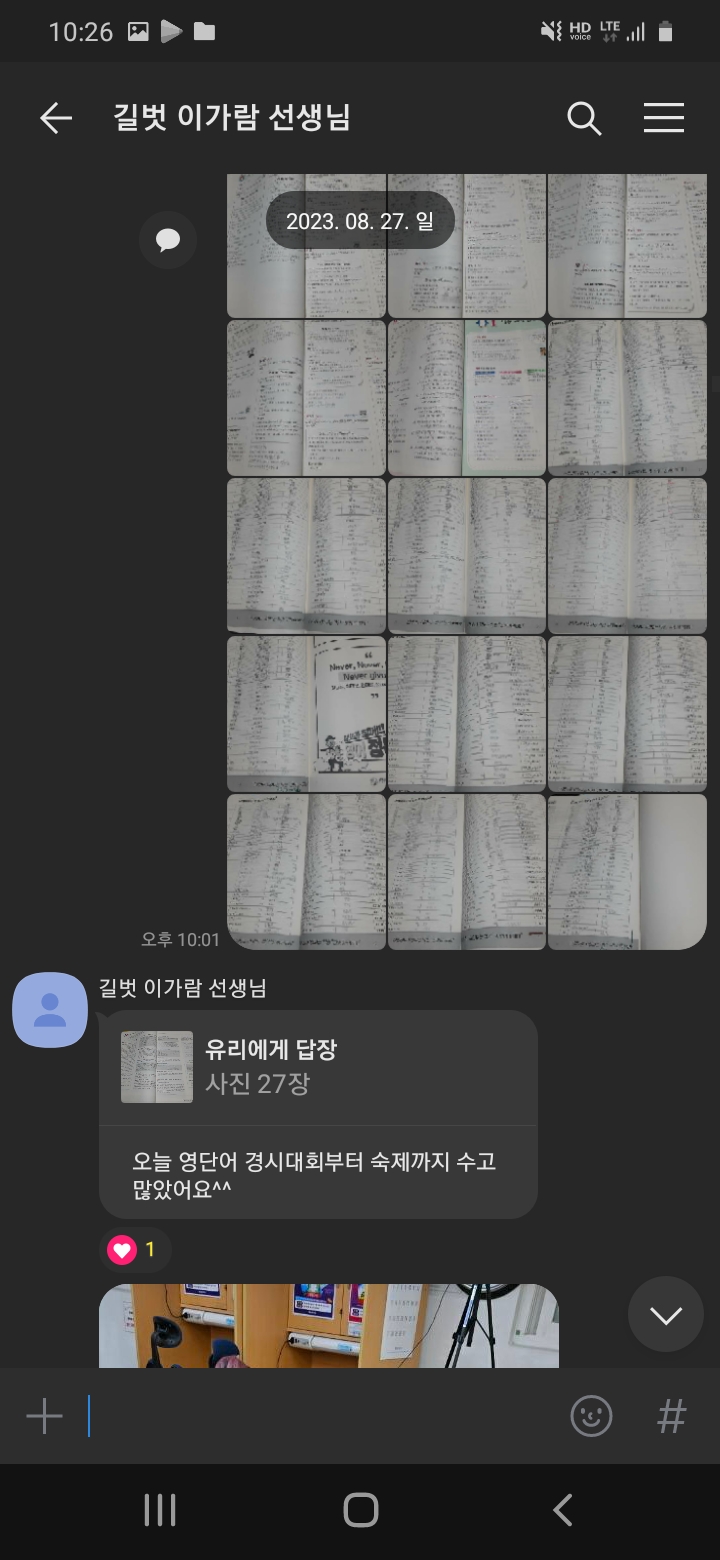 숙제검사와 학습문자 확인도 정말 꼼꼼하게 해주시기 때문에 이가람선생님 반에 있는 한 열심히 하지 않을 수 없습니다! 또한 학생들이 웃을 수 있게, 즐겁게 해주시는 것 같습니다.